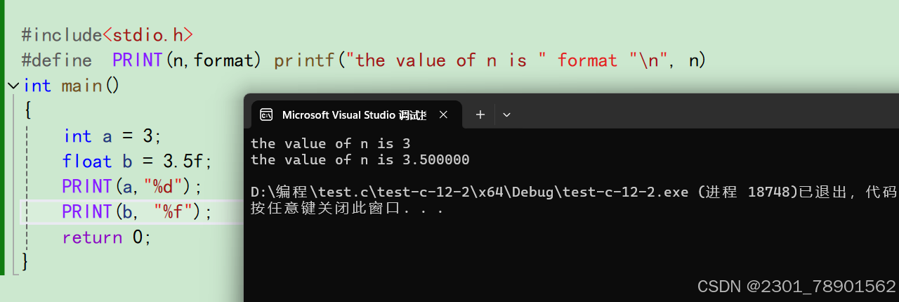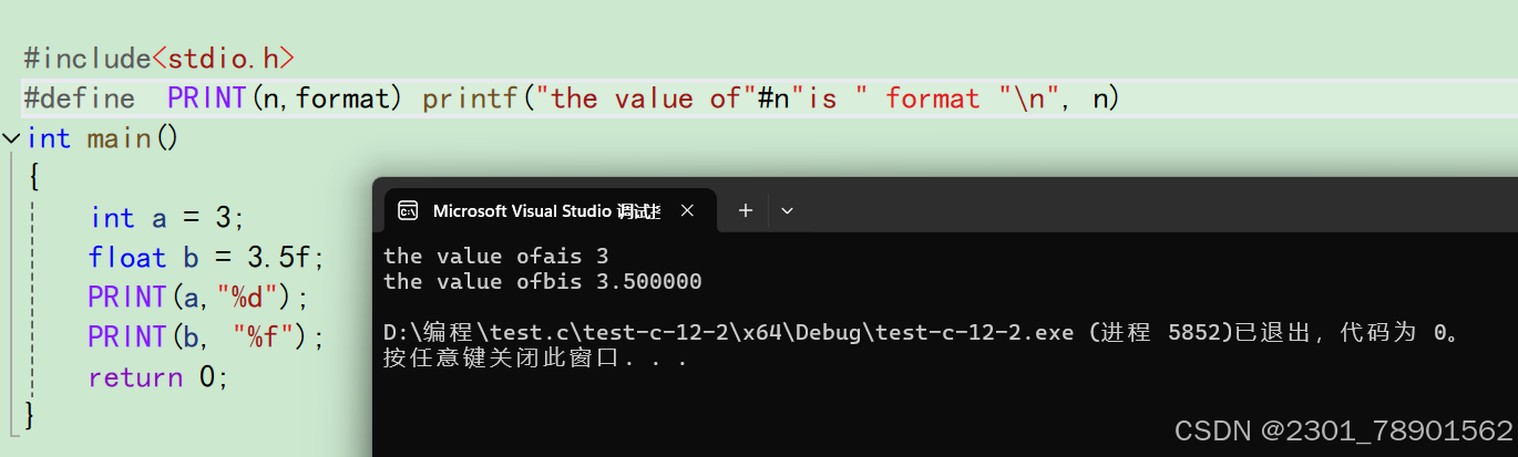 示例:比如当我们有⼀个变量 int a = 10; 的时候,我们想打印出: the value of a is 10 .