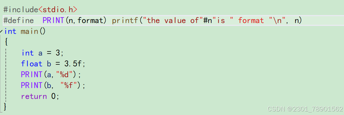 # define PRINT(n) printf( "the value of " #n " is %d" , n);