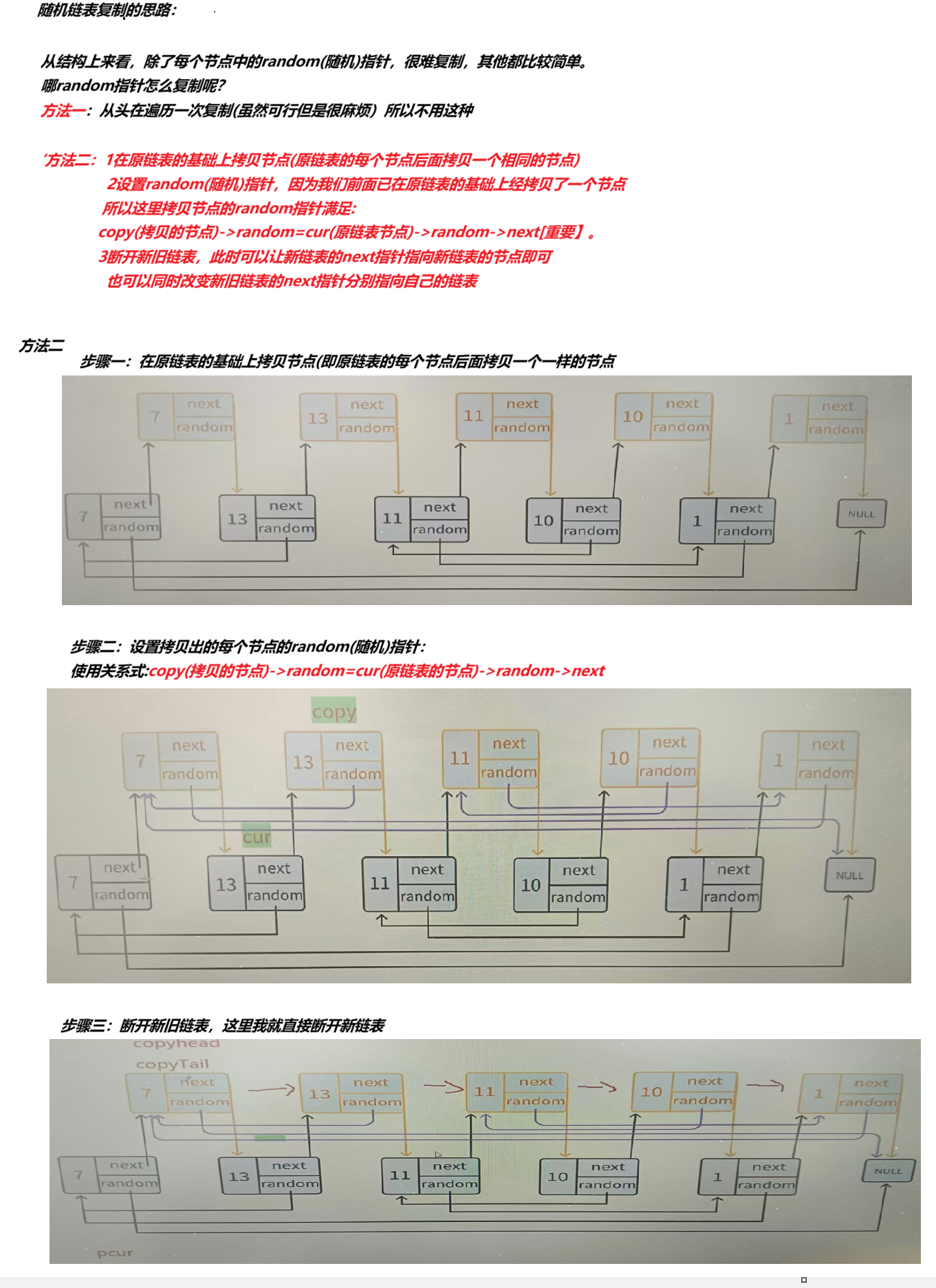 //copy(新节点)->random = pcur(原链表节点)->random->next;