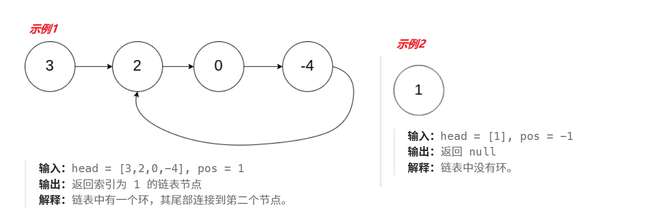 给定一个链表的头节点 head ,返回链表开始入环的第一个节点。 如果链表无环,则返回 null。