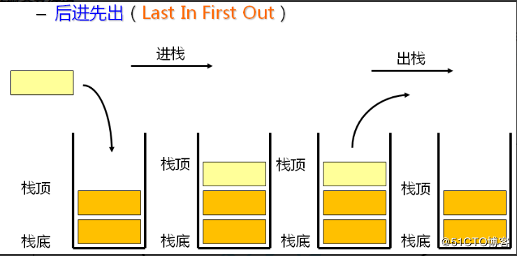 后进先出,故名思意,就是先进去的数据后出来,而后进去的数据先出来 就如同枪上的弹夹一样,先压进去的子弹后打出去,而后压进去的子弹先打出去