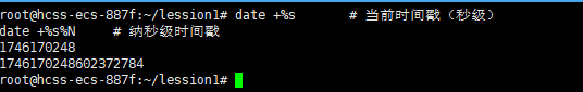 root@hcss-ecs-887f:~/lession1# 在 Linux 中,时间戳(Timestamp) 表示从 1970年1月1日 00:00:00 UTC(Unix 纪元) 到当前时间的秒数(或毫秒/微秒/纳秒)