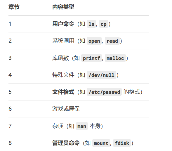 linux中有很多指令,我们不可能全部记住,man是linux/unix系统中的手册页指令,当我们遇到不熟悉的命令可以用man来查看命令,函数,配置文件的详细使用说明。