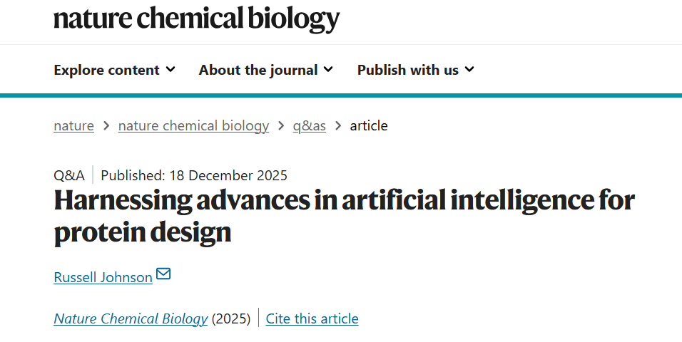 参考文献:Johnson, R. Harnessing advances in artificial intelligence for protein design. Nat Chem Biol (2025).