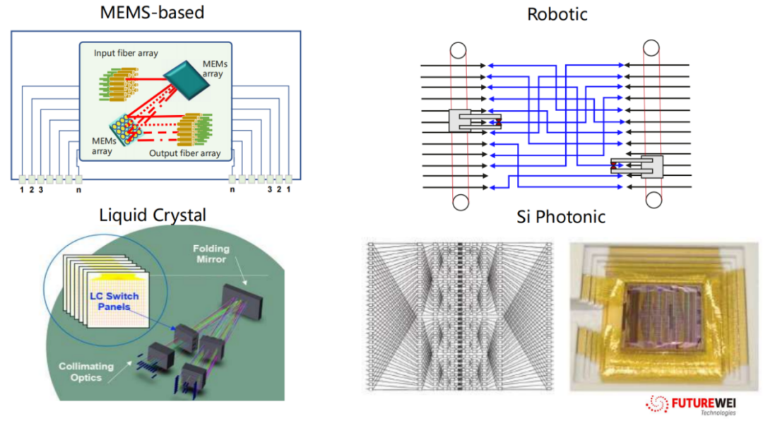 综合 Futurewei Beyond CLOS 报告及OC P峰会等材料分析,2025年OCS技术流派主要有以下4种: