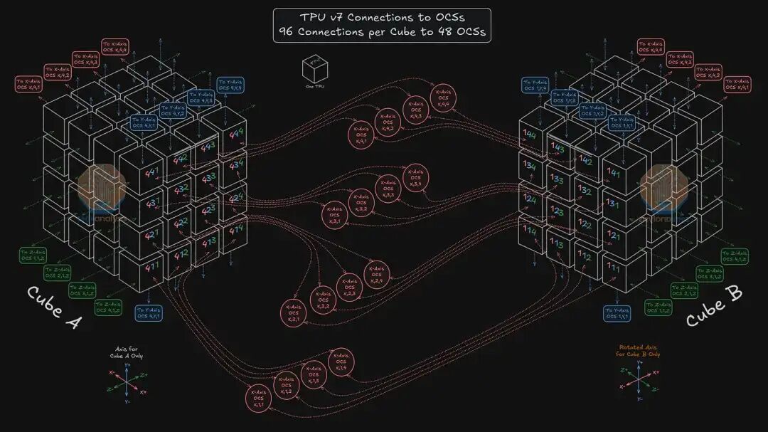 1.1 ICI 网络革命:从 48 台 OCS 构建 TPUv4 Pod 到 3D Torus 范式