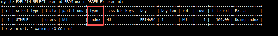 mysql> EXPLAIN SELECT * FROM users WHERE user_id = 1;