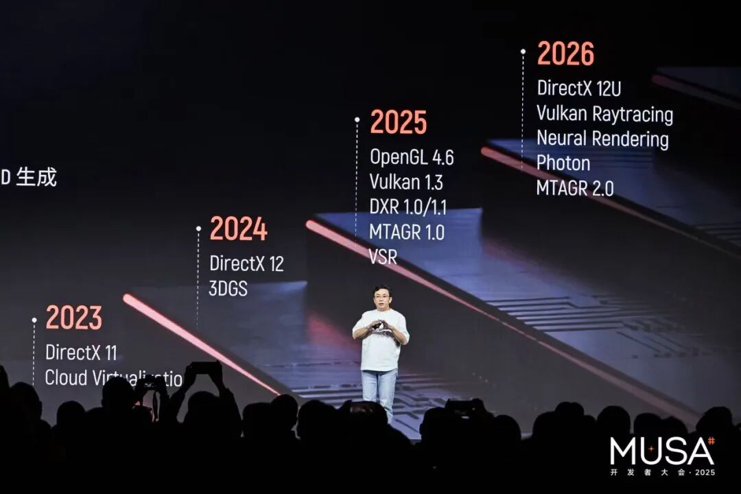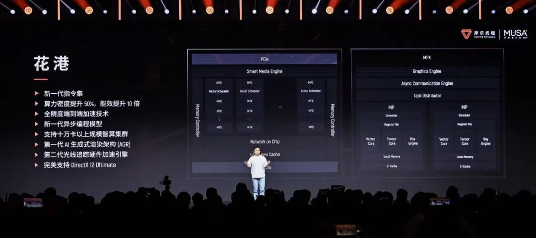 在硬件层,本次发布的全功能 GPU 架构「花港」,标志着国产 GPU 在核心技术上的突破。