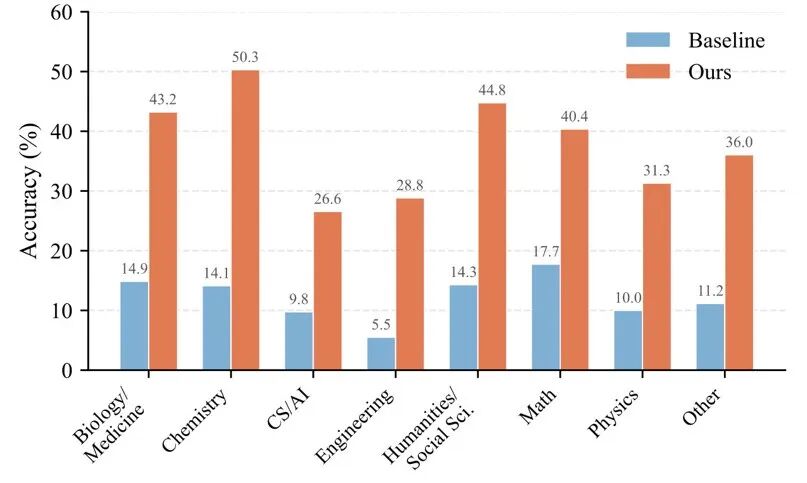 实验结果:HLE 成功率从 14% 提升到 39%