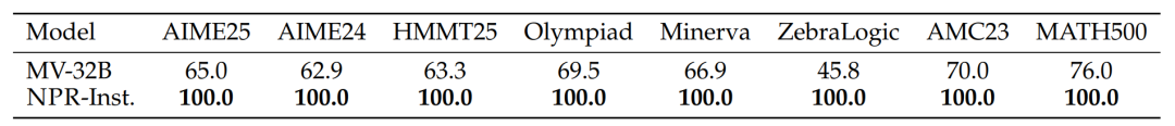 Multiverse-32B 在不同数据集上的并行率差异显著,表明其并行推理的采用高度依赖于数据集。尤其是在 ZebraLogic 等逻辑密集型任务上,其性能明显低于多个数学竞赛数据集,这表明从顺序行为逐步过渡到并行行为的 Multiverse 训练范式,导致并行策略的内化不一致,并且对领域特征非常敏感。相比之下,NPR 模型在所有八个数据集上均达到了 100.0% 的并行触发率。这种一致性意味着端到端的 NPR 训练流程能够更可靠地将并行推理作为模型的默认问题解决模式,而不受数据集领域或复杂性的影响。实际上,这意味着 NPR 不仅能更频繁地触发并行推理,而且能够在不同的评估数据集上稳健地实现这一点。