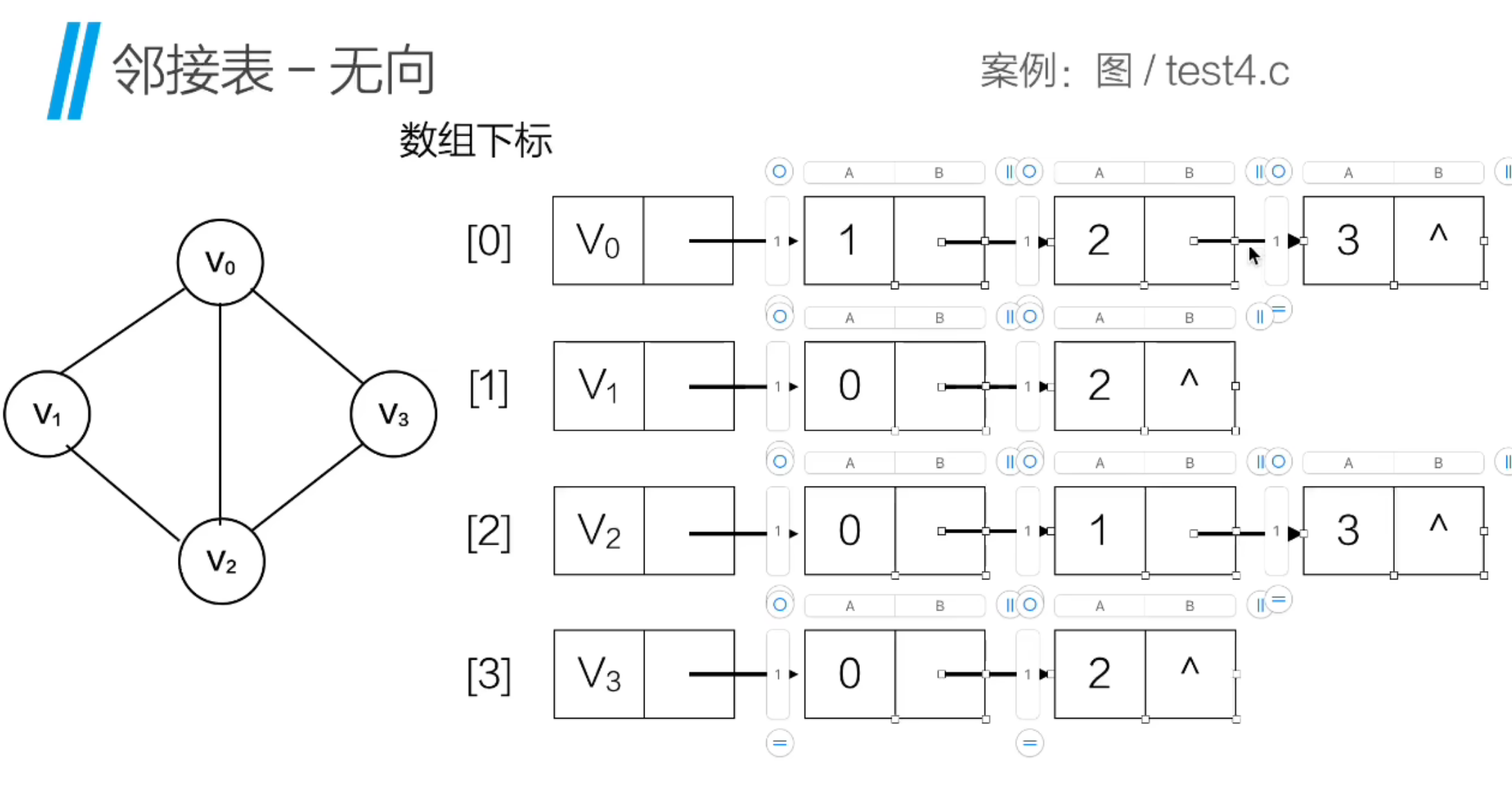 通过这样的循环,我们就能逐步构建出整个无向图的邻接链表。