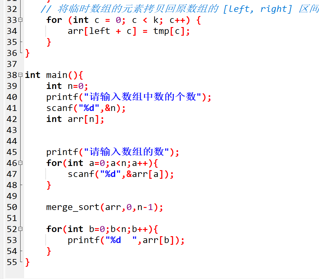 merge_sort函数是整个算法的灵魂,它的参数arr是待排序数组,left和right分别代表当前排序区间的左右边界。