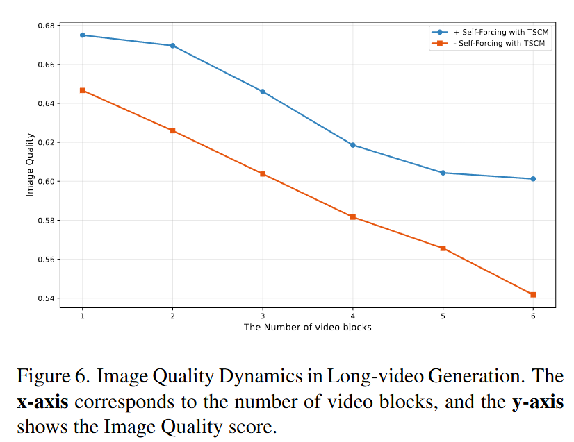 其中 是步骤 的前向扩散。与 DMD 的关键区别在于使用模型预测的数据而不是真实数据作为视频条件,从而减轻了训练-推理差异及相关的误差累积。