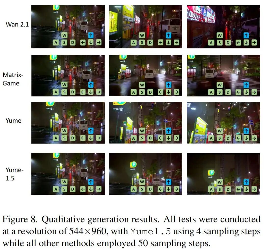 图1。Yume1.5框架支持三种交互式生成模式:从描述生成文本到世界、从静态图像生成到世界,以及基于文本的事件编辑。所有模式均通过连续键盘输入控制,用于人物和摄像机移动,实现自回归生成可探索且持久的虚拟世界。我们在补充材料中包含了演示视频。