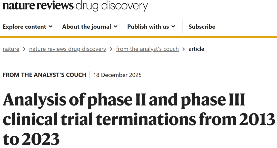 总体而言,本研究揭示了过去十年中 II 期和 III 期临床试验终止趋势的关键变化,尤其是在成本更高的 III 期试验中。研究人员希望,这些发现能够为减少临床试验早期终止提供参考。相较于疗效或安全性问题,战略/商业层面的终止原因可能更容易通过优化决策流程和研发策略加以改进,从而减少因试验终止带来的资源浪费。