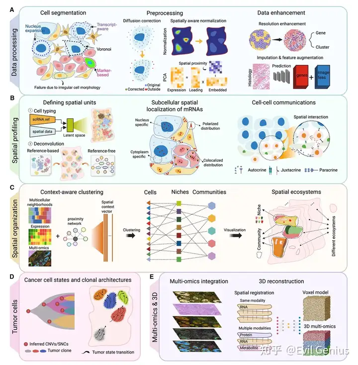 组学为中心 | scGPT-spatial, NicheFormer, CellPLM | 基于 Transformer 或图网络,学习通用空间生物学表征,支持跨平台整合、域识别、互作预测 |