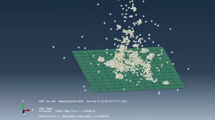 Abaqus/Explicit的颗粒流功能是简易离散元行为的实现基础,可定义离散颗粒单元,通过设置颗粒间及颗粒与有限元网格的接触属性,模拟颗粒集合体与连续介质的相互作用,比如岩土体与支护结构的耦合分析。此外,内聚力单元可与颗粒单元结合,模拟材料从连续到离散的损伤演化,实现FEM-DEM过渡耦合。