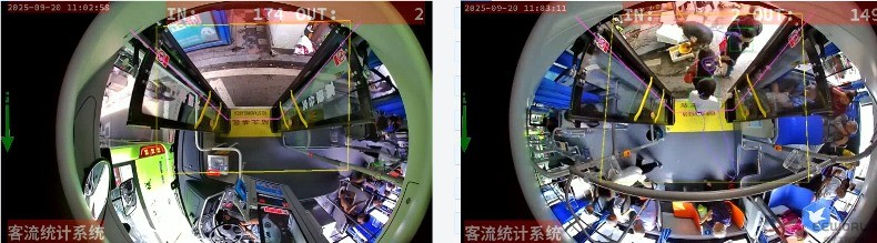 客流统计系统摄像机,一般安装在公交的前后门上方位置,通过捕捉乘客图像特征点,来实现计数。实时数据可以在后台查看,并根据每日、每周、每月每季度、每年等历史数据生成各种报表,以便公交管理方实现更精细化地运营。