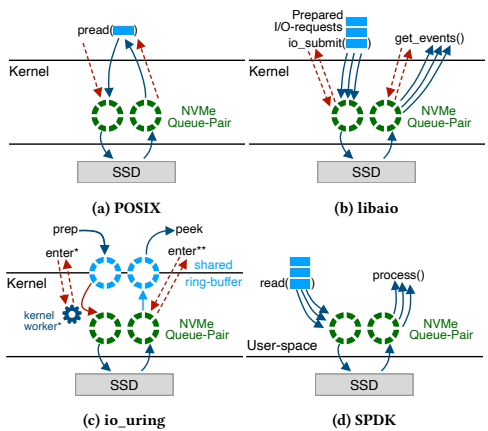 每个工作线程都可以直接、独立地向任何SSD提交I/O请求,从而实现了高效、无锁的并行I/O访问。
