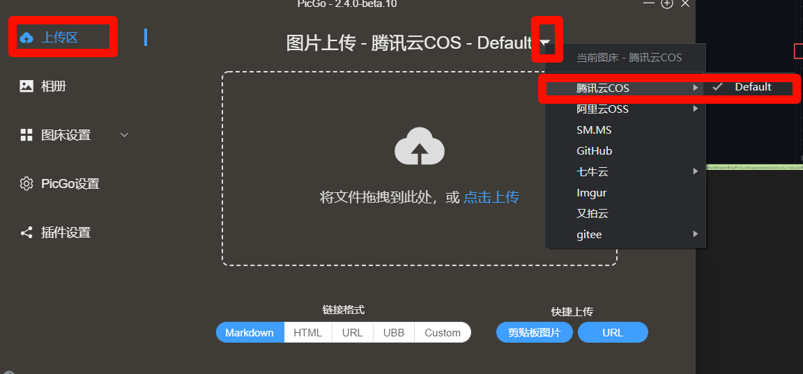 ap-guangzhou。完成配置后,PicGo 会通过 API 测试连接的连通性。如果配置正确,本地图片在拖入上传区后会立即同步至云端。