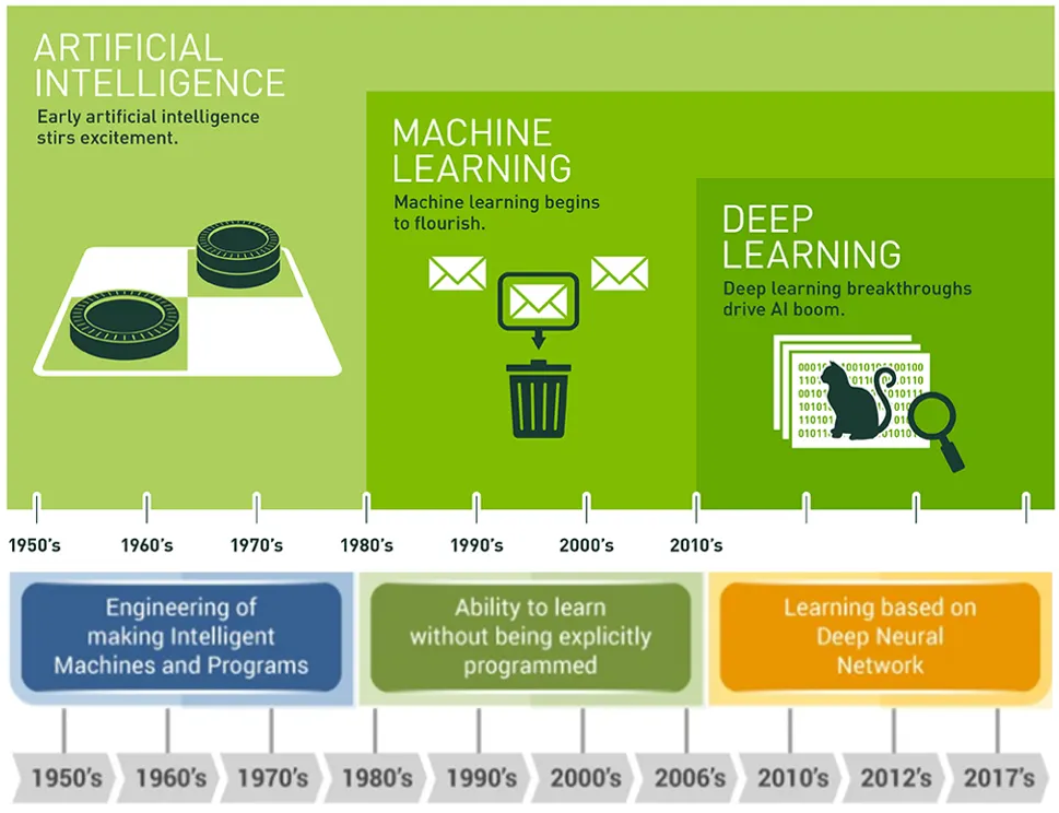 进入 1980-90 年代,研究重心转向能“从数据中学习”的机器学习。支持向量机、决策树等算法开始用于模式识别。2000 年前后,多层神经网络与反向传播的复兴,掀开了深度学习的序幕,为后来的大规模预训练模型打下基础。