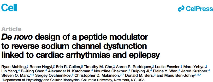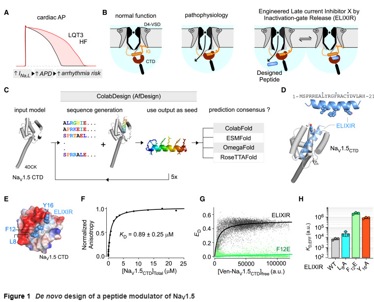 Mahling, R., Hegyi, B., Cullen, E.R., Cho, T.M., Rodriques, A.R., Fossier, L., Yehya, M., Yang, L., Chen, B.X., Katchman, A.N. and Chakouri, N., 2025. De novo design of a peptide modulator to reverse sodium channel dysfunction linked to cardiac arrhythmias and epilepsy. Cell.