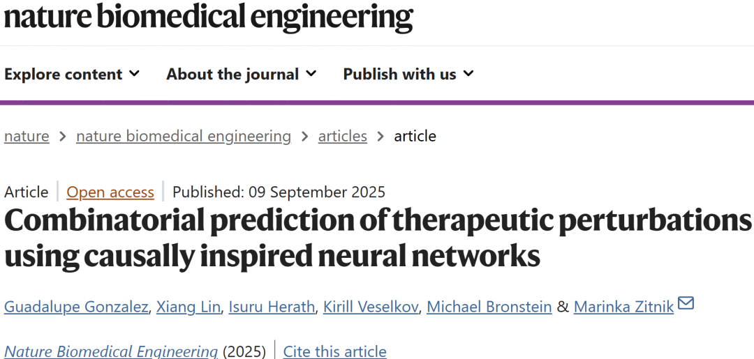 Gonzalez, G., Lin, X., Herath, I. et al. Combinatorial prediction of therapeutic perturbations using causally inspired neural networks. Nat. Biomed. Eng (2025).