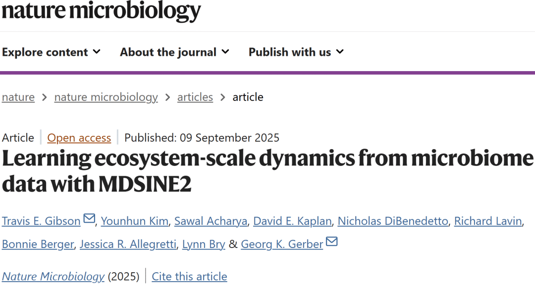 Gibson, T.E., Kim, Y., Acharya, S. et al. Learning ecosystem-scale dynamics from microbiome data with MDSINE2. Nat Microbiol (2025).