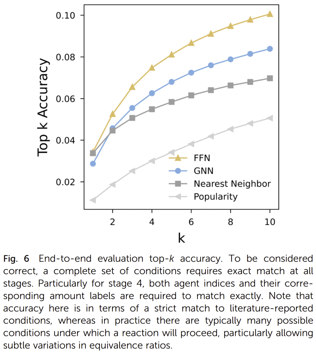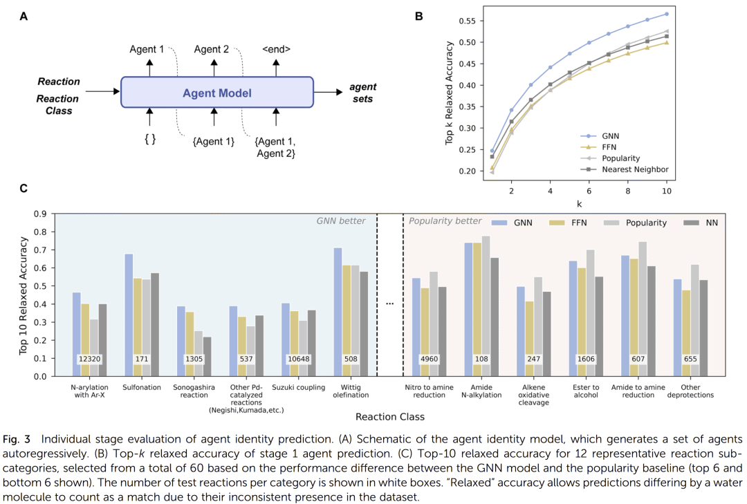 研究人员使用 Pistachio 专利数据库,经过标准化、去重和过滤后,构建了覆盖 1376 种常见试剂的训练数据集。模型采用图神经网络(GNN)和分子指纹+前馈神经网络(FFN)两种架构,分别对比其性能。