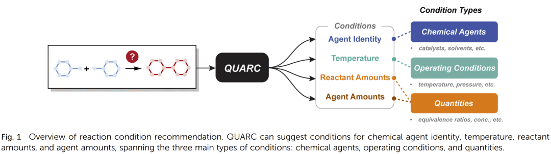 现有方法大多局限于预测某些单一成分(如催化剂或溶剂),或只考虑定性信息,难以提供完整可执行的实验方案。为解决这一问题,研究人员提出了 QUARC 框架,通过统一建模实现从试剂身份到温度及当量的全流程预测。