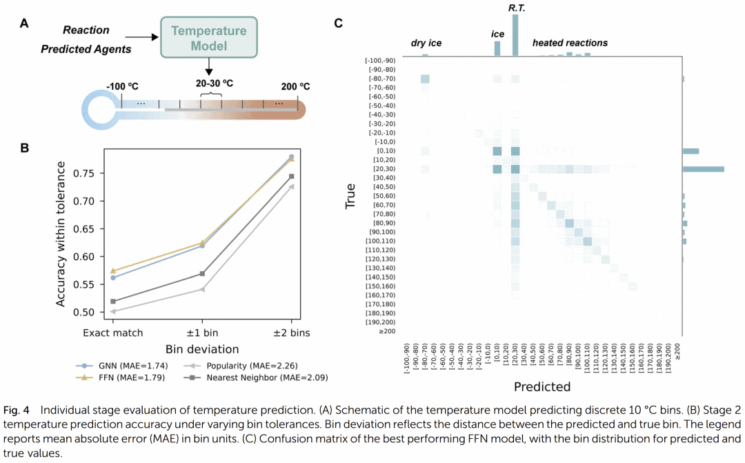 研究人员将温度预测设定为分箱分类任务,范围覆盖 −100 至 200°C。结果表明: