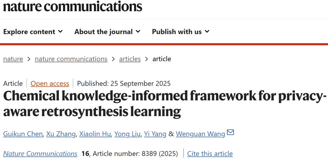 Chen, G., Zhang, X., Hu, X. et al. Chemical knowledge-informed framework for privacy-aware retrosynthesis learning. Nat Commun 16, 8389 (2025).