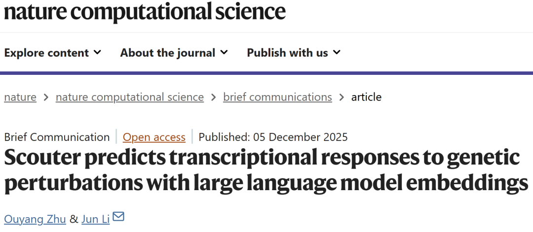 Zhu, O., Li, J. Scouter predicts transcriptional responses to genetic perturbations with large language model embeddings. Nat Comput Sci (2025).