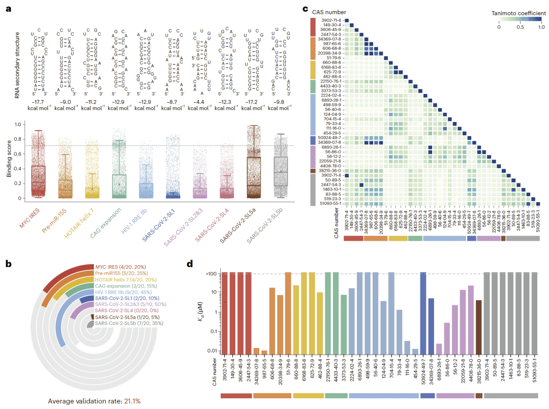 图 3|疾病相关 RNA 靶点的小分子实验验证结果。