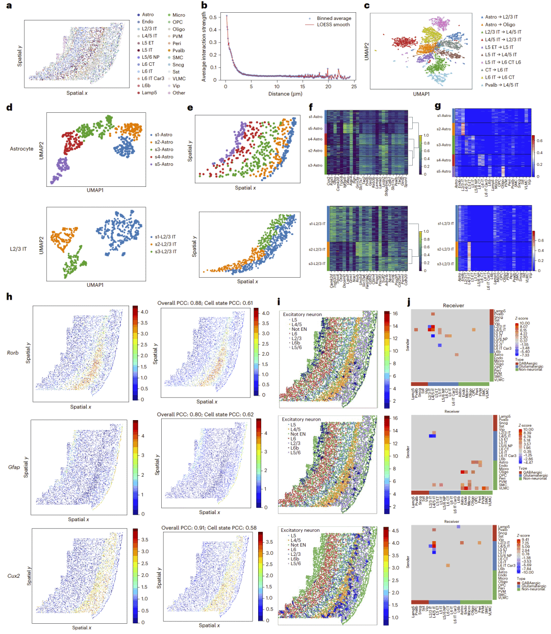 图2 | 小鼠大脑皮层中 CCI 模式及 CCI 驱动的细胞亚群划分。
