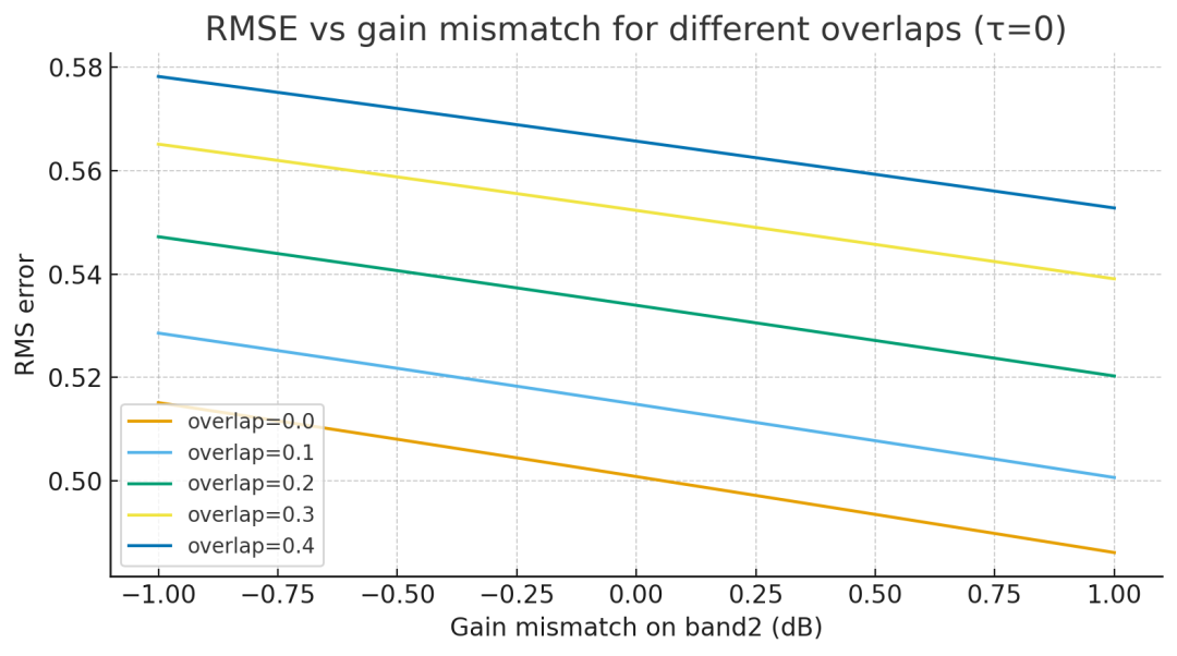 仅子带2 增益 +0.5 dB:RMS ≈ 0.0146(比相位错配小很多)。