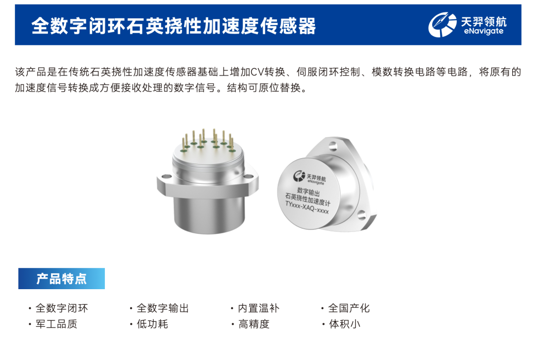 它是在传统石英挠性加速度计的基础上,把原本偏模拟的测量/伺服链路做了数字化集成: C/V 转换 + 伺服闭环控制 等电路内置,把加速度直接变成方便接收处理的数字信号,并且声称结构可原位替换(对存量平台升级友好)。