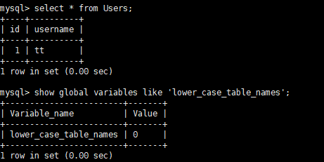 1 row in set (0.00 sec)应用程序中因为都需要用这个表,但是部分开发人员的代码用的全小写(users),部分代码用的驼峰命名法(Users),结果纯小写的应用执行时全部报错: