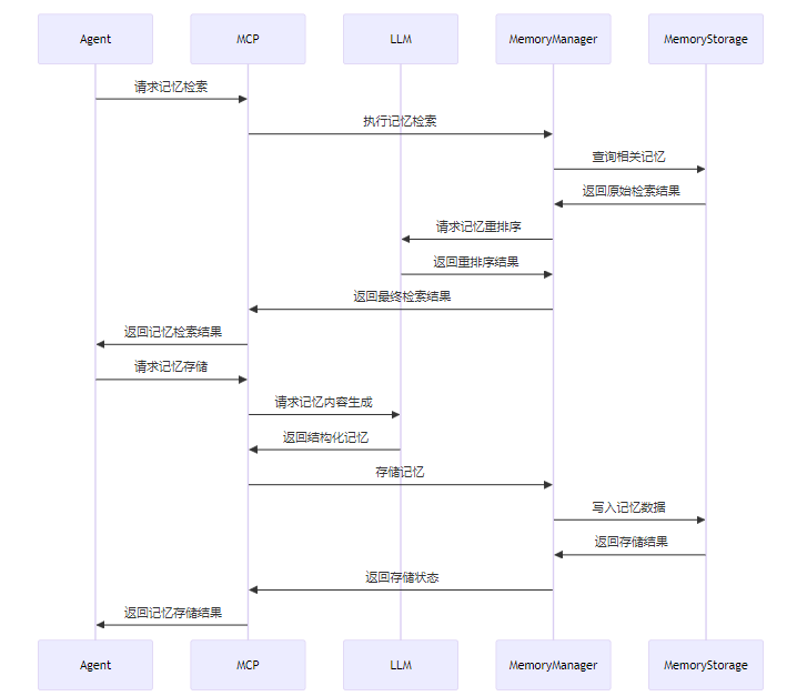 MCP 与长期记忆系统的集成架构如下所示:
