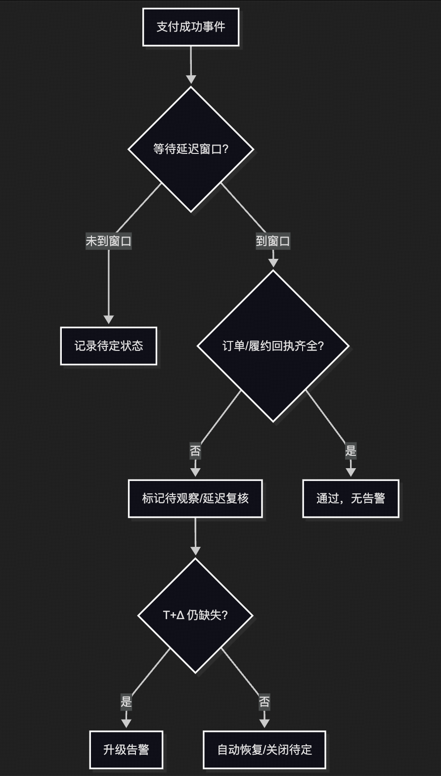 乱序 | 同 key 事件跨分区或重平衡 | “支付成功但订单未生成”误报 | 支付 -> 订单 |
