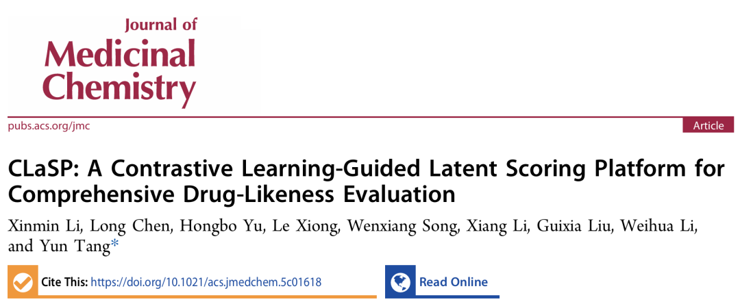 在现代药物研发领域,早期化合物的类药性评估是提升研发效率、降低失败风险的关键环节。传统评估方法在泛化能力、可解释性及综合考量药物关键属性方面存在显著局限。近期,唐赟老师团队在《Journal of Medicinal Chemistry》发表的“CLaSP: A Contrastive Learning-Guided Latent Scoring Platform for Comprehensive Drug-Likeness Evaluation”一文,提出了一种融合变分自编码与三元组对比学习的创新框架,为药物类药性评估提供了全新解决方案。本文将系统剖析这一方法的技术架构、性能优势及实际应用价值。