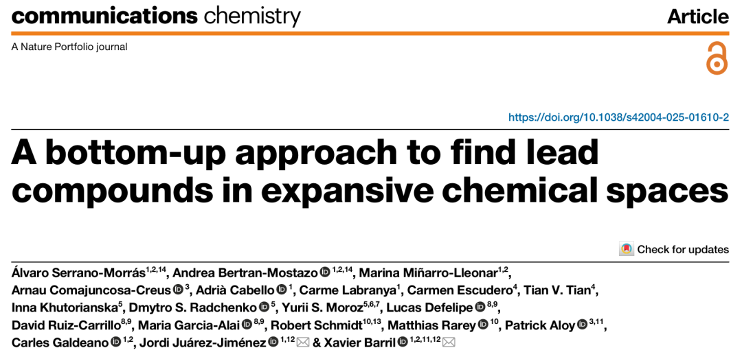 在药物发现领域,随着按需合成化学库的规模突破万亿级,传统高通量筛选与虚拟筛选方法面临着计算成本剧增、筛选效率低下的严峻挑战。近期,发表于《Communications Chemistry》的研究论文《A bottom-up approach to find lead compounds in expansive chemical spaces》提出了一种创新的自下而上策略,通过系统化探索片段空间与靶向挖掘超大化学库的结合,成功实现了对BRD4(BD1)靶点新型结合剂的高效发现,为解决超大化学空间导航难题提供了重要范式。