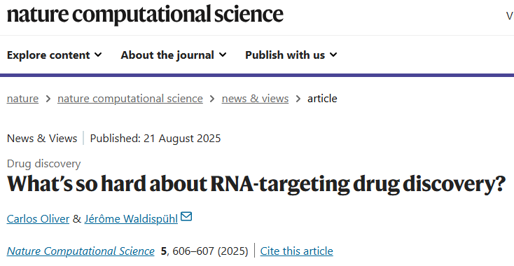 Oliver, C., Waldispühl, J. What’s so hard about RNA-targeting drug discovery?. Nat Comput Sci 5, 606–607 (2025).