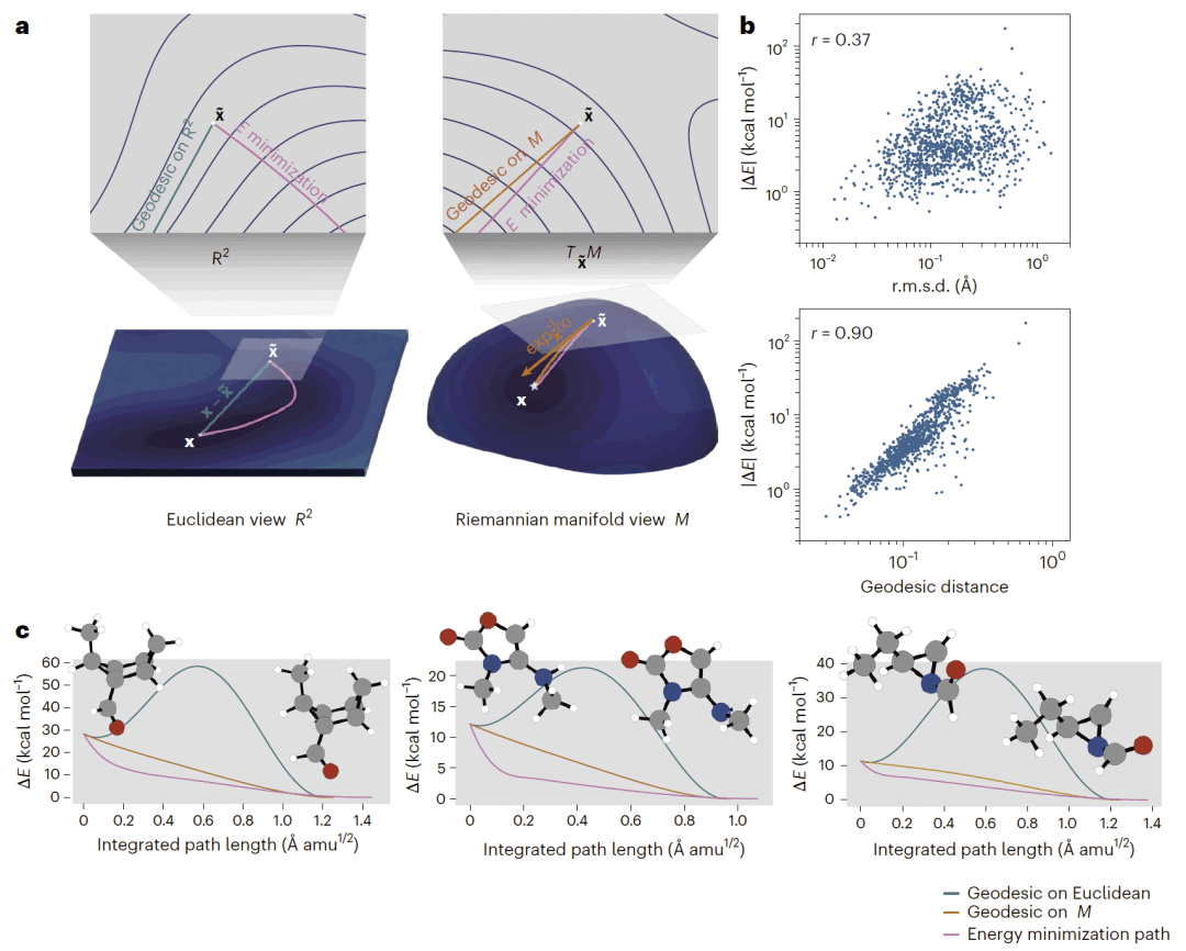 图 1|欧几里得空间与黎曼空间在分子结构优化中的对比分析。