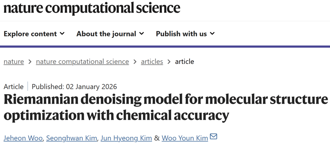 Woo, J., Kim, S., Kim, J.H. et al. Riemannian denoising model for molecular structure optimization with chemical accuracy. Nat Comput Sci (2026).