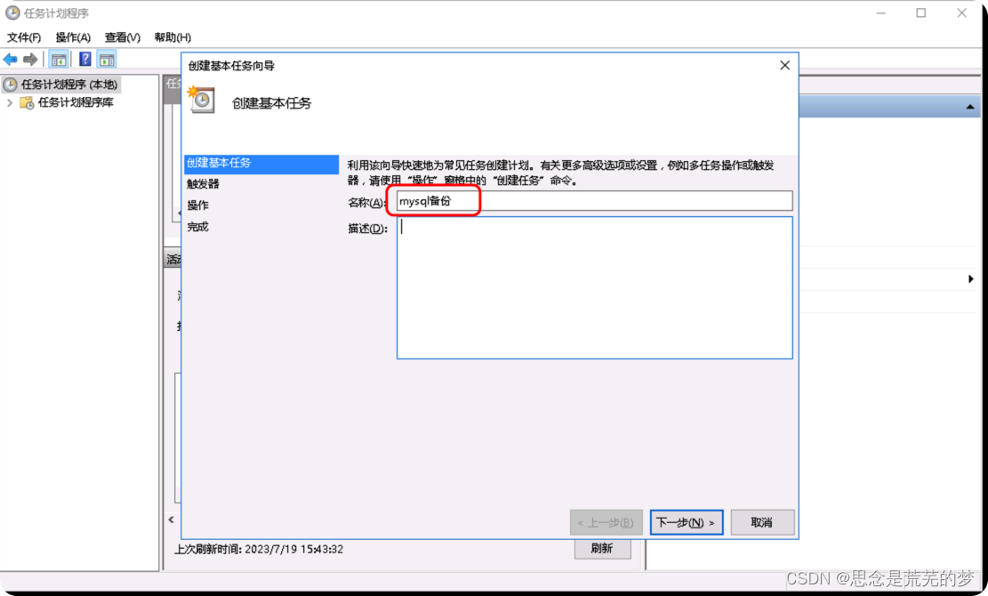 打开windows的的任务计划程序,点击创建基本任务