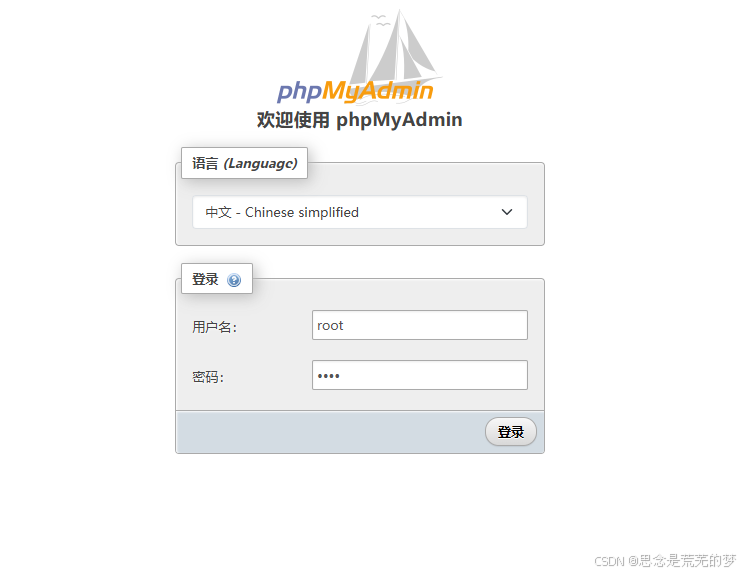 4、浏览器访问地址:http://localhost:13306/ ,可以看到如下界面,输入root,root即可连接数据库。