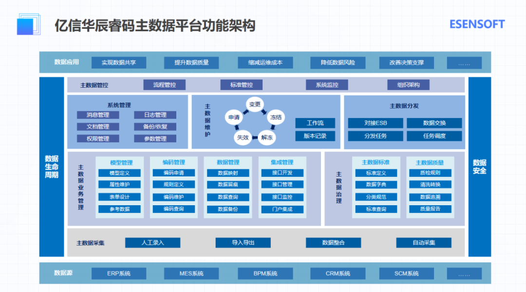 - 作为唯一权威数据源,所有系统通过该平台获取和更新主数据