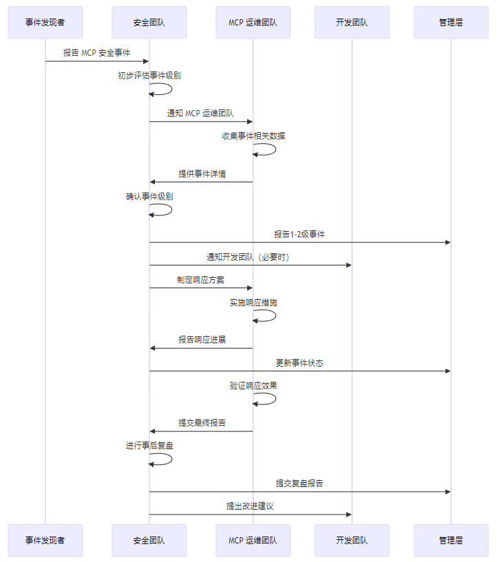 创建了 MCP 安全事件响应模板,用于指导 MCP 系统安全事件的响应和处理。该模板包括事件分级、响应流程、沟通机制、事后复盘等内容,帮助组织建立规范的 MCP 安全事件响应体系。