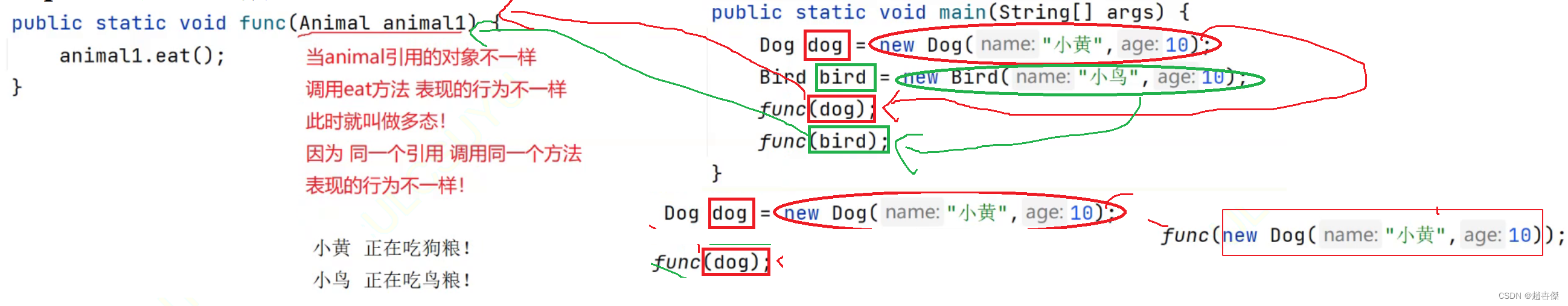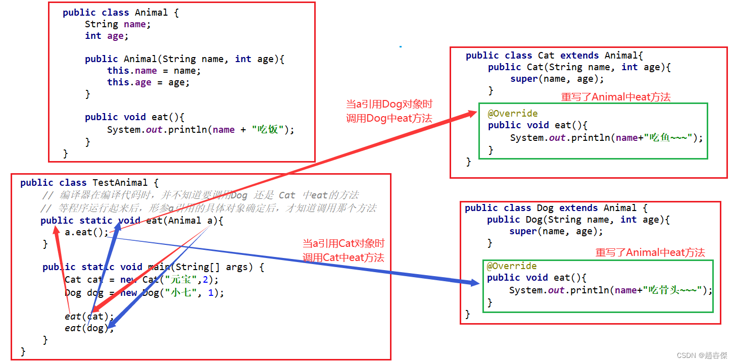 多态体现:在代码运行时 ,当传递不同类对象时 ,会调用对应类中的方法 。